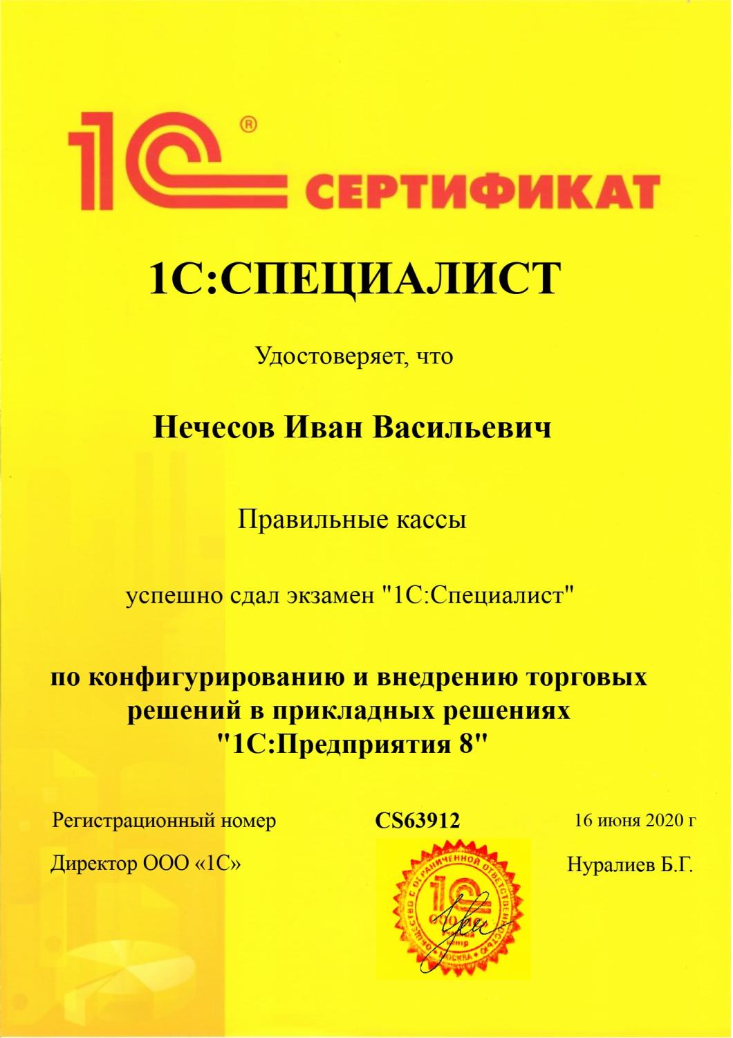 1С:Специалист по настройке и доработке торговых решений на платформе 1С
